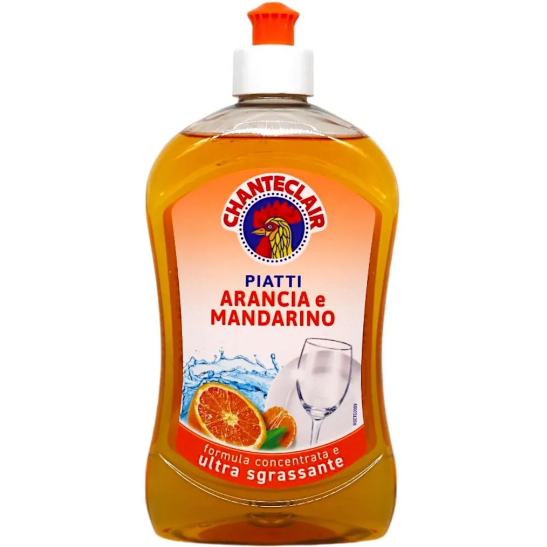 Засіб для миття посуду Chanteclair з ароматом апельсину і мандарину, 500 мл має основу рослинного походження. Пройшов дерматологічні випробування, гіпоалергенний, збагачений ефірними оліями. Нейтральний ph. Засіб не шкодить шкірі. Ефективно видаляє складні забруднення й жирові плями. Не залишає слідів. Швидко змивається.