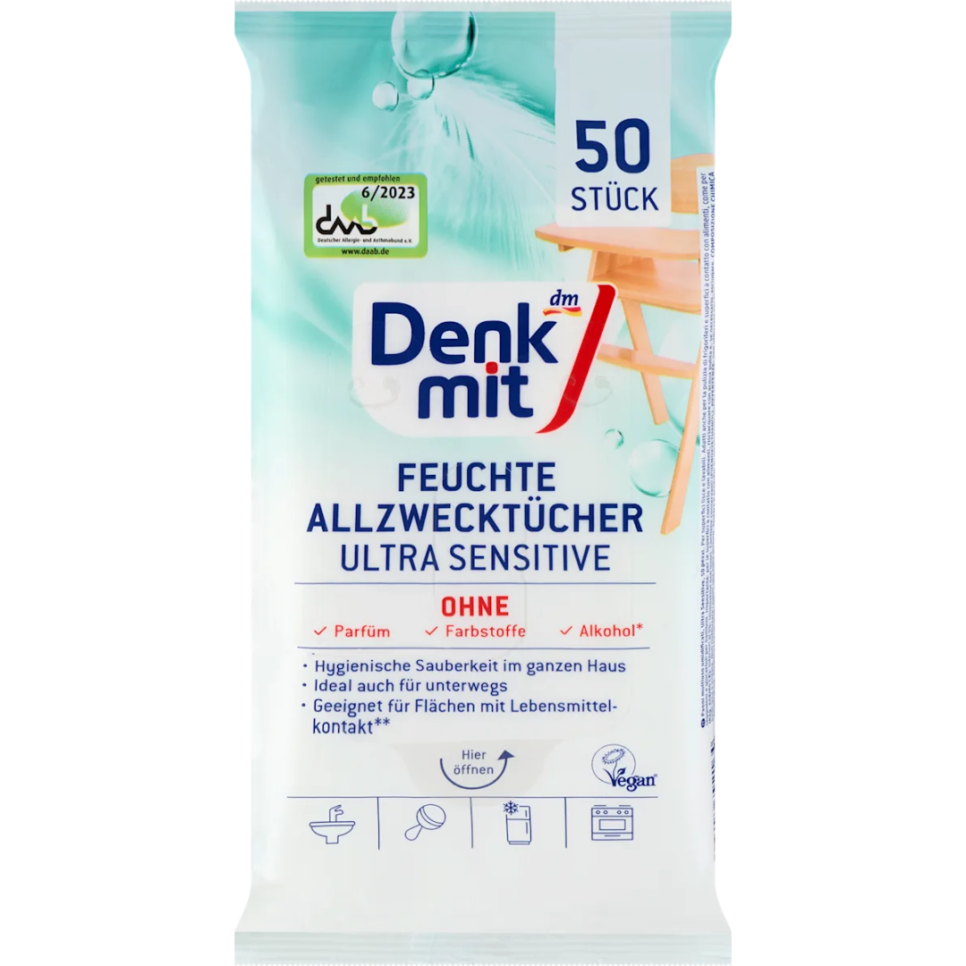Універсальні серветки для прибирання Denkmit Ultra sensitive для чутливої шкіри, 50 шт