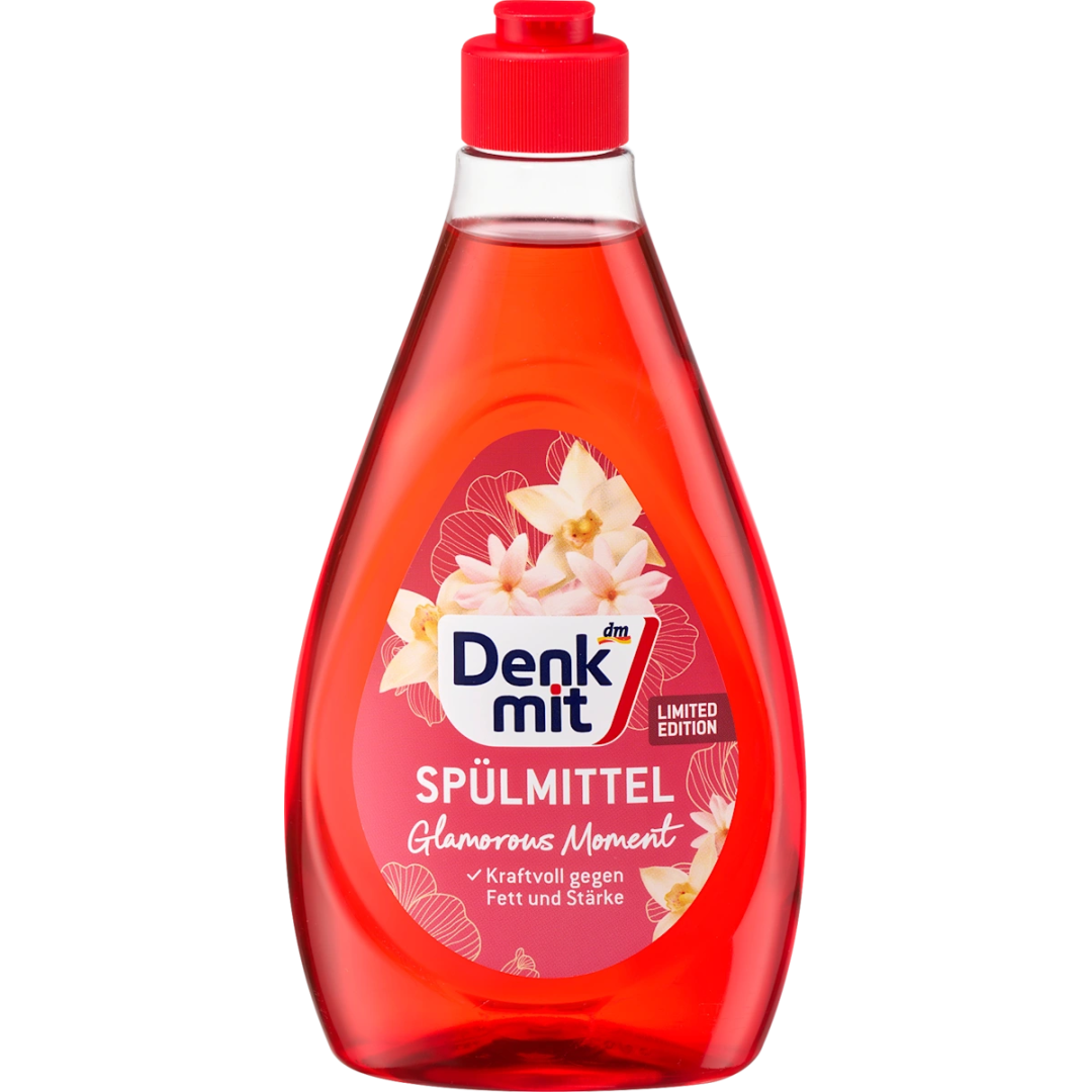 Засіб для ручного миття посуду Denkmit Glamorous Moment поєднує потужну мийну дію з приємним ароматом. Навіть жирні залишки легко видаляються, залишаючи посуд, склянки та столові прибори блискучими та чистими. Концентрована формула робить засіб для миття посуду особливо економічним; навіть невеликої кількості достатньо для миття посуду.